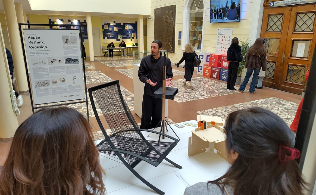 A standout feature of the meeting was the exhibition “Repair. Rethink. Redesign.”, curated by Armin Ćosić and showcasing works by students from the Academy of Fine Arts, University of Sarajevo. The exhibition demonstrated how repair principles align with the 9R circular economy strategy, featuring projects like modular furniture, repair-focused toys, and reimagined local transport concepts. This interdisciplinary collaboration between economics, eco-design, and fine arts underscored the potential of creative solutions to drive sustainability.